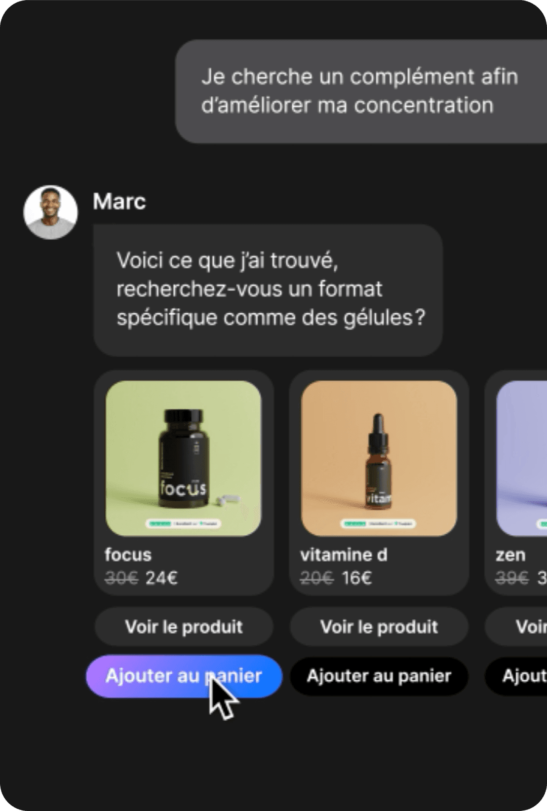 Suggestion de produits complémentaires directement dans le chat
