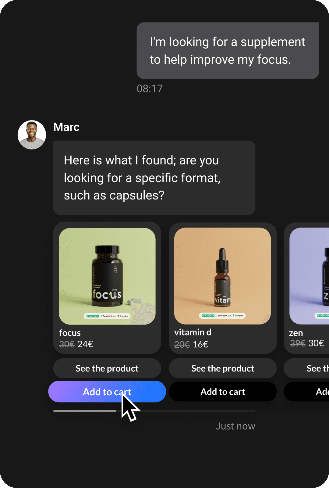 An AI agent that engages in conversation to guide your customers to choose the right product